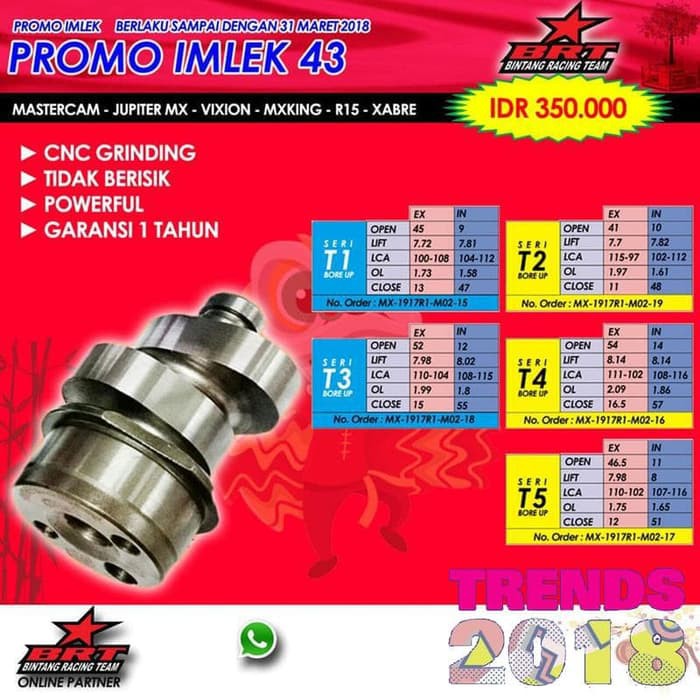 Noken Brt T1 Jupiter Mx - Master Cam Brt Jupiter Mx T1 Noken As Mx Brt T1 T28 Not Sps Moto1 Cld Kawahara Shopee Indonesia : Cari harga dan promo terbaik untuk noken as brt jupiter mx diantara 2723 produk.. Rakit head silinder & ganti noken brt t29 new jupiter mx || project bore up 177cc. Kalau t1 dan t2 lebih rendah dari ori nya mx. Assalammualaikumhalo teman pada vidio kali ini saya ingin berbagi cara pemasangan noken as brt tyipe t2 di jupiter mx. O grinding cnc o tidak berisik o minim floating pada rpm tinggi . Ready stock lengkapnoken as brt cnc grinding, tidak berisik, powerfullyamaha jupiter mxyamaha vixionyamaha mx kingyamaha xabreyamaha r15 (sebelum r15v.